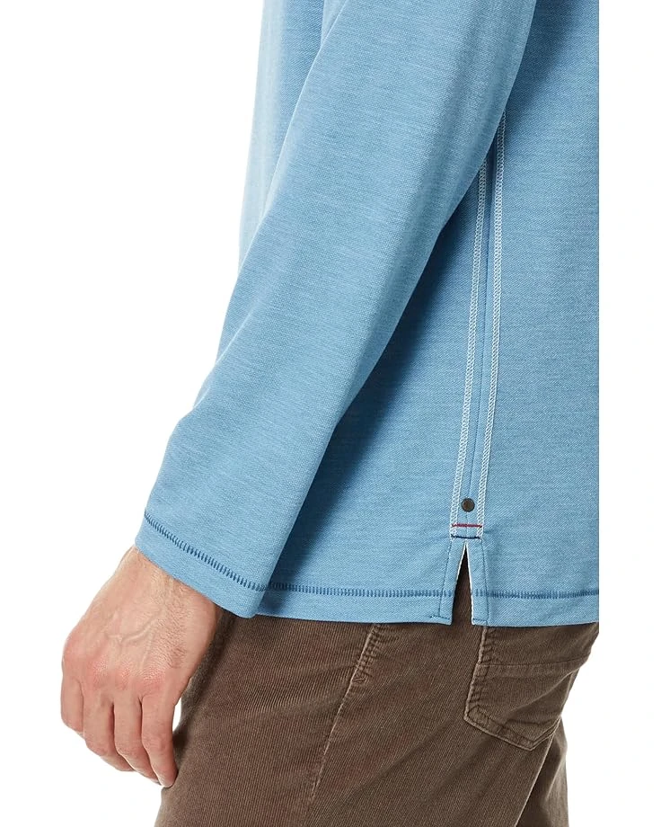 - From beach to bar style the Tommy Bahama® Coasta Vera Polo. Designed in a classic fit, this polo features a sophisticated collared neck with a three-button placket, ensuring you look sharp for any occasion. The long sleeves provide added comfort, while the zippered hand pockets keep your essentials secure. Crafted with a hint of stretch for a flexible fit, it boasts tonal and coconut stitching throughout, adding a unique touch to your wardrobe.