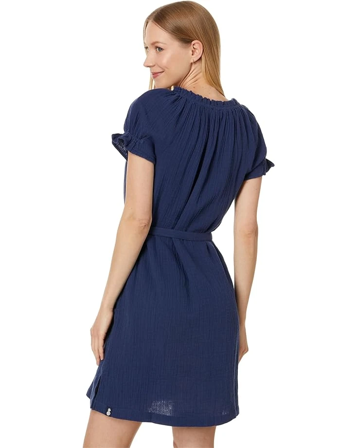 - Styled with a front buttoned closure and a self-belt, the Tommy Bahama® Coral Isle Short Sleeve Dress is a perfect choice for casual outings and parties. The Island Soft® cotton fabrication of the dress takes your comfort to the next level. This cotton dress comes with short sleeves, a collared neckline, and a straight hem. Flaunt your fashion and style wearing this short dress.