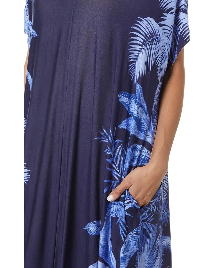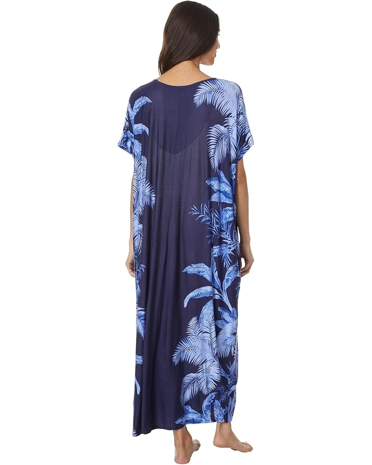 - The Tommy Bahama® Floral Caftan is a knit long caftan that is designed for your everyday comfort and style. This printed caftan is made from rayon and spandex fabric that takes your comfort to the next level. The short sleeves, V-neckline, straight hem, and allover floral print add to its style.
