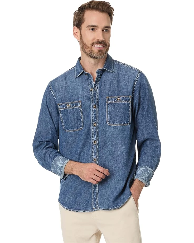 - The Tommy Bahama® Indio Canyon is solid yarn dyed button-front shirt with double button-through patch pockets. It has a collared neckline and straight back yoke with center pleat.