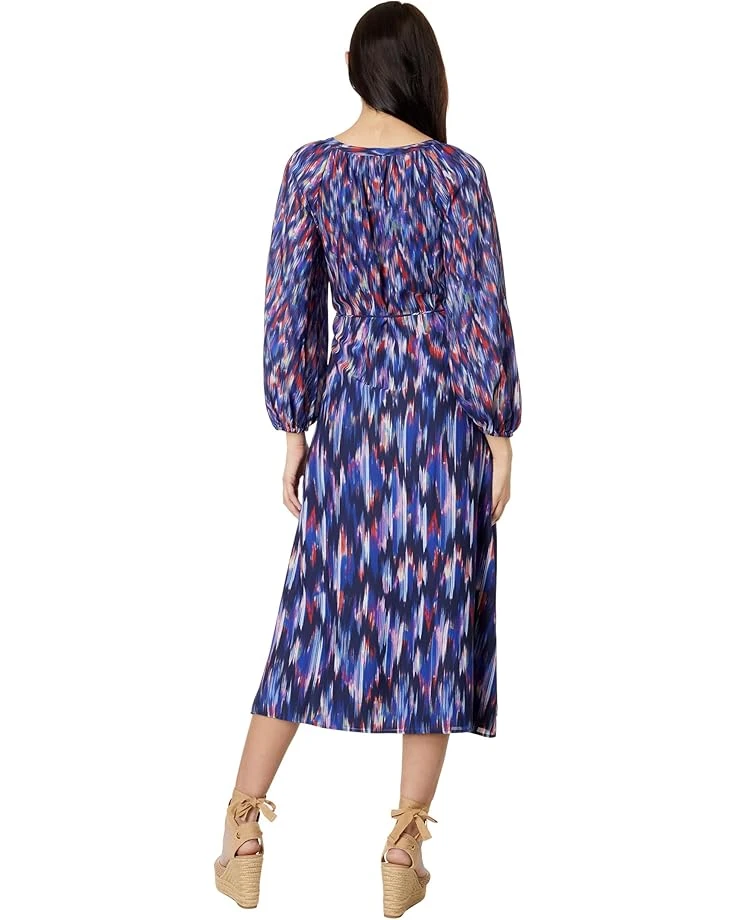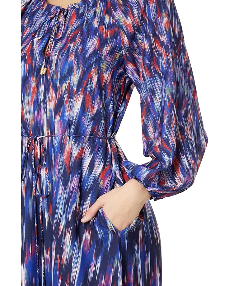 - Step up the style game while keeping up with the comfort wearing Tommy Bahama® Iridescent Ikat Maxi Dress that features allover printed details and a offers a flattering fit. The dress is beautifully designed with a round neck with tie-up closure, long sleeves with elasticated cuffs, removable tie-up detailing on the waist, and side slits at the hem. It features two side pockets for storage and is intended to hit below the knees.