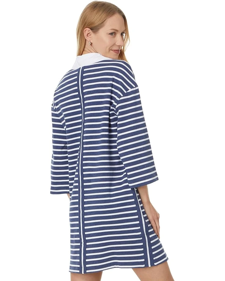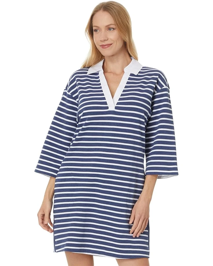 - The Tommy Bahama® Jovanna Stripe 3/4 Sleeve Dress is a short-sleeve dress with a hint of stretch. Made from wrinkle-resistant cotton blend fabric, this patterned dress comes with elbow-length sleeves, a collared neckline, and a straight hem. Featuring an allover striped pattern, this short dress is perfect for casual outings and parties.