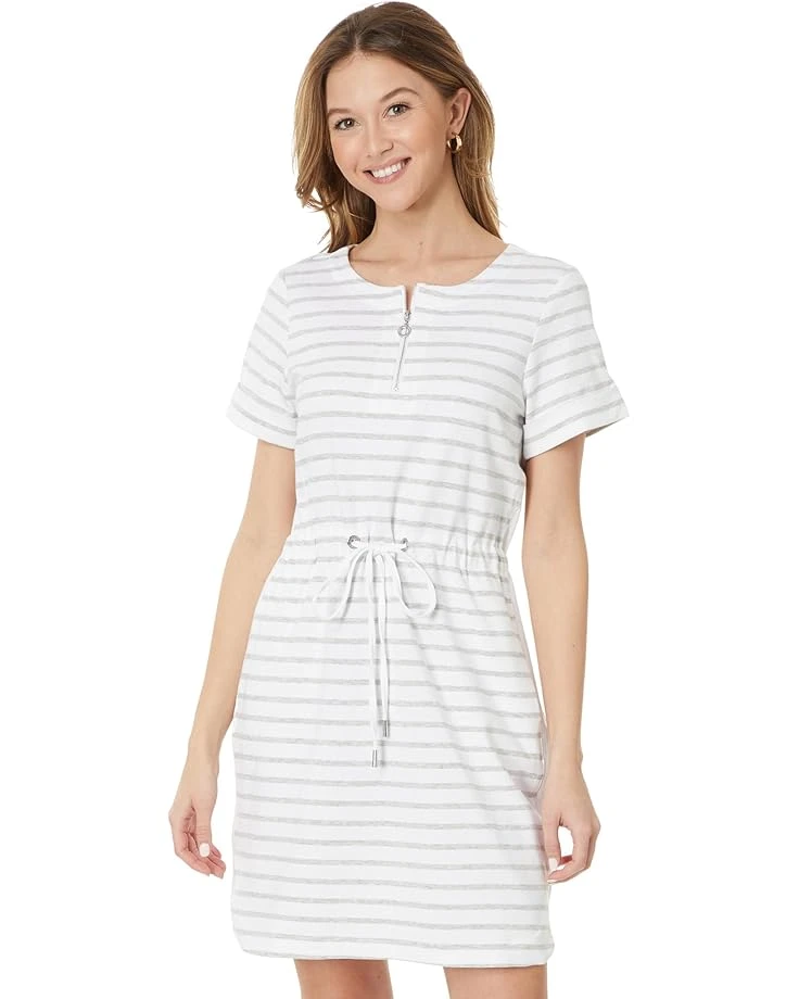 - Styled with striped detailing all over, wear the Tommy Bahama® Jovanna Stripe Zip Front Dress to stay cool and comfortable all day. The half-zippered front closure of the dress ensures easy wear while the tie-drawstring waist cinches for a flattering fit. Wrinkle-resistant, this striped dress features a T-shirt-style silhouette that matches your casual and laid-back styles. An ideal choice for everyday wear, this T-shirt dress takes your comfort to the next level.