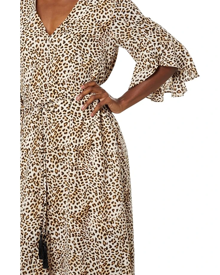- Embrace your feminine side wearing the Tommy Bahama® Lovely Leo Maxi Dress. This allover animal print dress features V-neckline, flutter sleeves, and flounce high and low hemline. It comes with tassel self belt at waist.