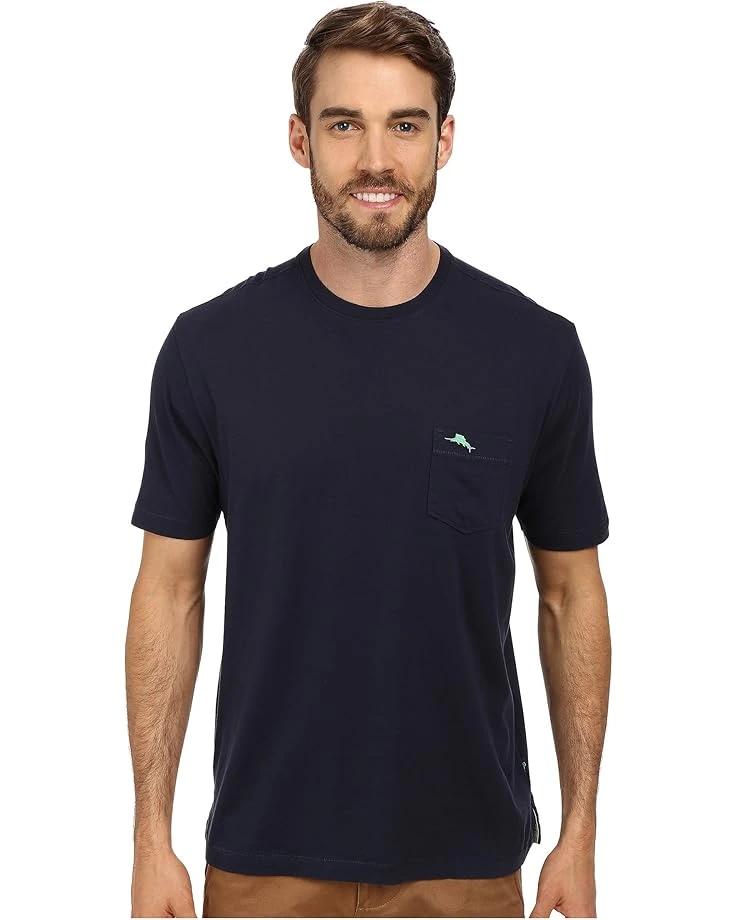 - Like a gentle caress from a warm Caribbean breeze, this Tommy Bahama® New Bali Skyline T-Shirt is ultimate in weekend relaxation, made from a soft Pima cotton jersey and constructed with tagless crew neck, short sleeves, a straight hem and a signature sailfish embroidery at the patch pocket.