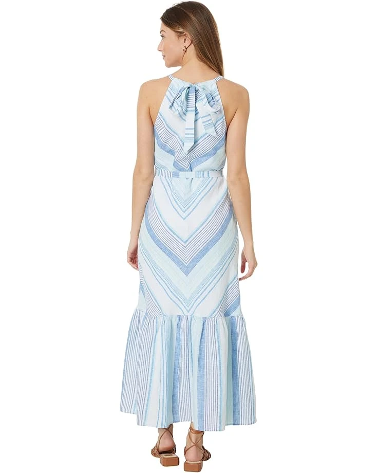 - Prepare to turn heads by wearing the stunning Tommy Bahama® Ocean Reverie Maxi Sundress. Its flattering V-neckline and sleeveless style make it an ideal choice for warm-weather days. The feminine and flowy silhouette features a tiered flounce bottom, adding a touch of movement and sophistication to your attire. The back neck tie closure and self-tie belt allow for a personalized fit, while two practical hand pockets offer a convenient place to stash your essentials.