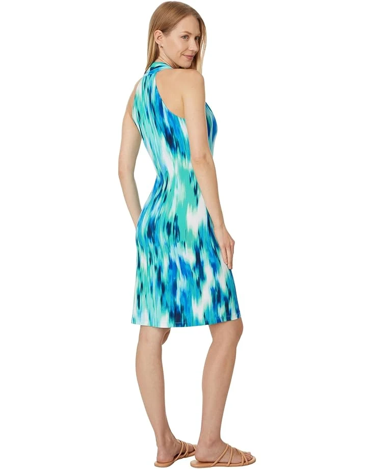 - The Tommy Bahama® Sandy Ikat Shimmer Short Dress is crafted from wrinkle-resistant Carmela fabric that travels well. This short dress is designed with a sleeveless style, a V-neckline, and a straight hem. The tie-dye pattern allover offers an eye-catching appeal. From casual parties to events, this printed dress works for different occasions.