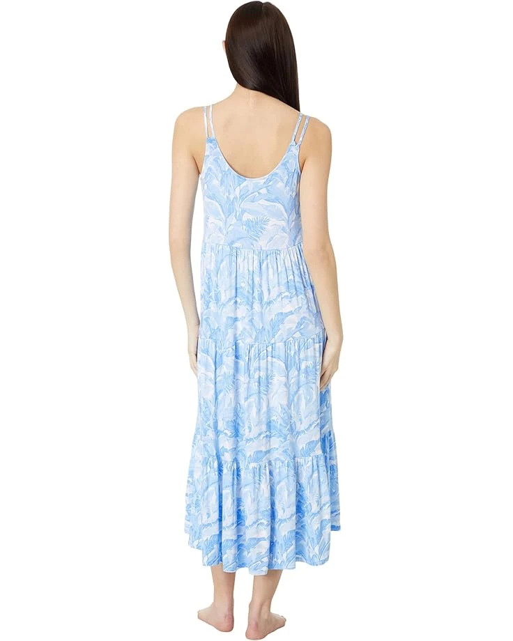 - Don the Tommy Bahama® Sleeveless Maxi Dress on your sunny day outings or getaways and enjoy a timeless style with beyond-the-beach versatility. Crafted in a super-soft, breezy, and stretchy fabric with a painterly leaf print all over, the dress comes in a relaxed fit with a sleeveless bodice paired with a flowy, tiered skirt.