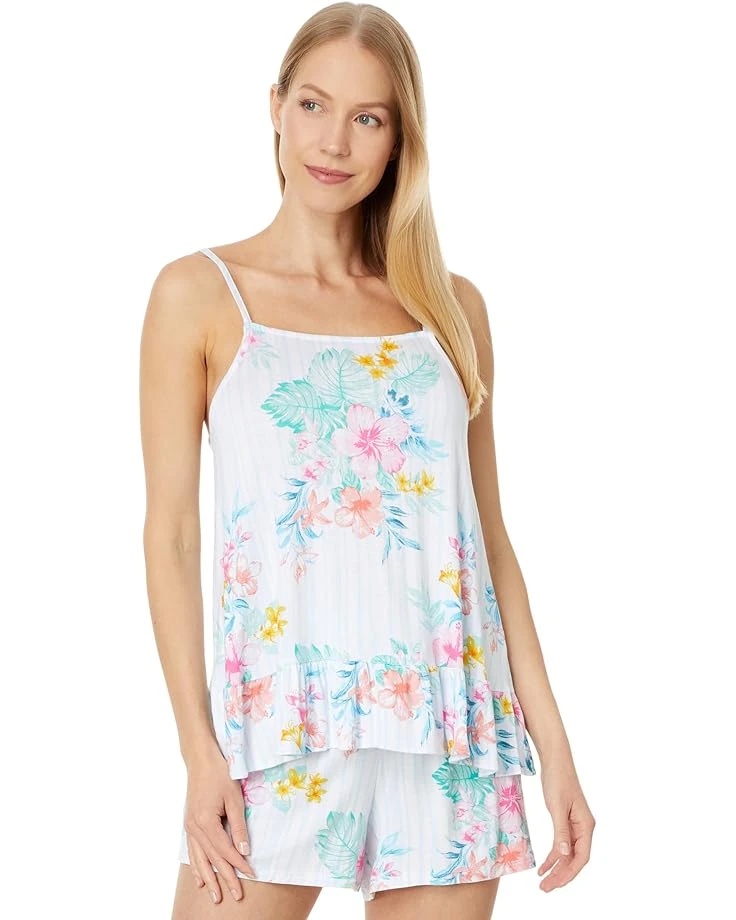 - The Tommy Bahama® Sleeveless Short PJ Set is perfect to upgrade your sleepwear collection. The pull-on style top has a square neckline, spaghetti straps, and a stitched flowy ruffle hemline. The pull-on shorts have a comfortable waistband for prolonged wear. The PJ set has an intricate floral design that adds a feminine touch to the look.
