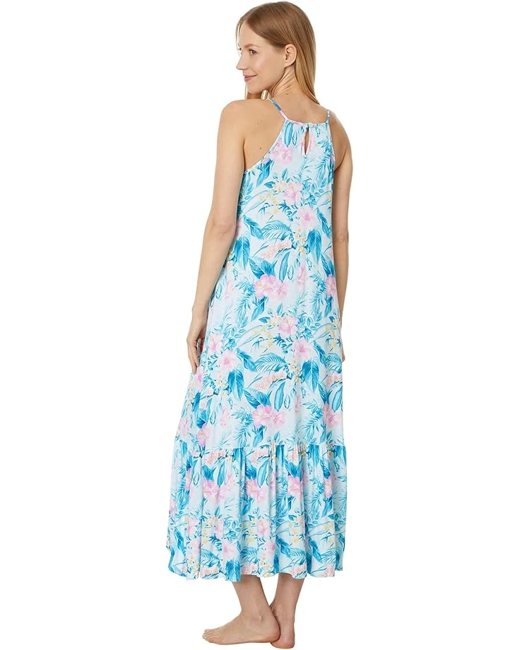 - Redefine the beauty of floral effervescence wearing Tommy Bahama® Tropical Sleeveless Maxi Gown. It features a scoop neckline with spaghetti shoulder straps and an A-line tiered silhouette.