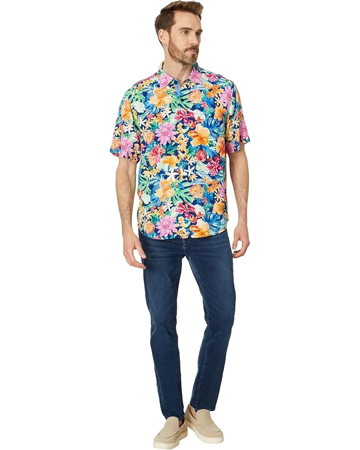 - Stay curious, stay kind wearing the allover eye-catching print Tommy Bahama® Veracruz Cay Perfect Paradise. Made from super soft printed viscose, this regular fit shirt features coastal collared neckline, short sleeves, button front closure, pocket on the left chest, and curved hem.